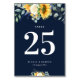 sunflowers navy blue wedding Table number