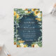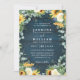Sunflowers Navy Blue Wood Rustic QR Code Wedding Invitation