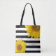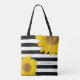 Sunflowers on Black and White Stripes Personalized Tote Bag