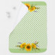 This country / farmhouse design has beautiful and bright yellow watercolor sunflower bouquets on a pastel green and white checkerboard background.