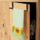 This country / farmhouse design has beautiful and bright yellow watercolor sunflower bouquets on a pastel green and white checkerboard background.