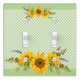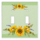 This country / farmhouse design has beautiful and bright yellow watercolor sunflower bouquets on a pastel green and white checkerboard background.