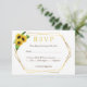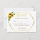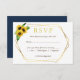 Modern and romantic watercolor sunflowers response card with a faux gold geometric shape. Navy blue back.