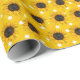 White polka dots on yellow quilted stitch background with sunflower pattern.