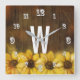 Sunflowers Painted on Wood | Monogram Square Wall Clock