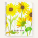 A personalized notebook featuring bright and cheerful sunflowers mingling with wild grasses growing this way and that trying to find their place in the sun illustrated with watercolor. Customize the notebook with your name and year. Nice for use as a journal, planner, a book of random thoughts and sketches.