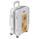 This unique carry-on bag is decorated with a watercolor sunflower and foliage pattern in shades of yellow and green.