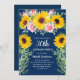 Sunflowers Pink Roses Navy Blue 30th Birthday Invitation
