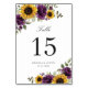 Sunflowers Purple Floral Rustic Table Number. Elegant Sunflowers Violet Lilac Flowers Greenery Wedding Table Numbers