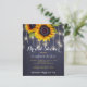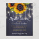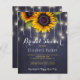 Rustic country style budget affordable bridal shower party stylish invitation template on dark midnight navy blue chalkboard background featuring big yellow gold sunflowers bouquets and strings of white twinkle lights. +++++++++++ Personalize with your details! You can choose to customize it further changing fonts and colors of lettering. +++++++++++ The invitation is suitable for summer or autumn fall outdoor garden backyard rustic country farmhouse bridal showers brunch luncheon parties. ++++++++++ PLEASE READ THIS BEFORE PURCHASING! This is a budget affordable wedding card printed on a paper sheet (each sheet has one card). ++++ For the best rapport price-quality, our advice is to choose the Semi-Gloss paper type (it is thick enough to be used for stationery) ++++ If you need envelopes, choose the ENVELOPE OPTION. +++ Double-check all the information and spelling of your text because you will receive exactly what you see - no one else will check anything before printing. ++++ This card is designed for size 4.5" x 5.6". In the case you choose another size of the card and text goes outside page, everything needs to be fixed before adding the product to cart. Please ask Live Design Service for help.