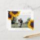 Big yellow gold sunflowers faux gold chic calligraphy hand lettered style script and frame making a modern rustic photo save the date wedding postcard. +++++++++ Easy to personalize with your photo, names and text on both sides! ++++++++++ Suitable for modern floral summer or autumn fall garden backyard rustic country, bohemian or farmhouse themed weddings. ++++++ The colors are changeable. If you need to customize it in a specific color, please contact the designer through the MESSAGE button below.