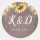 Sunflowers Rustic Country String Lights Wedding Classic Round Sticker