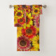 I ordered these towels because I am getting ready to stage my house for sale and wanted some really pretty towels to show off the bathroom. These are an absolutely perfect match for the teal walls and I could not be more pleased. Not only do they look beautiful, they also seem to be very good quality. They are different than any other towels I've had, as the surface fibers are not looped. I love that because I have never liked how most towels have loops that snag and pull no matter how careful you are. I pre-washed them and they came out beautifully. The towels are generously sized and they don't feel flimsy at all. I did not read the description well enough to understand I was paying as much as I was paying for just exactly what was pictured: not a set of two, but a single towel, hand towel and washcloth, so they are way more expensive than I thought (which was a lot, considering). However, I still love them enough that I went ahead and ordered a single additional bath towel so that I would have an actual set, but will need to buy a couple of solid color washcloths. Pricing is weird, because a single wash cloth is priced higher than a large bath towel?? Anyway, if you can afford them, these towels are fantastic. I would never pay this much except to show off a house for sale, but now that I've done it I will love them in my new home as well. Gorgeous! Vibrant Colors and exactly as pictured,..maybe evern better!