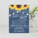 Sunflowers String Lights Blue 80th Birthday Party Invitation