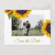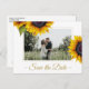 Big yellow gold sunflowers faux gold calligraphy script and frame making a modern rustic photo save the date wedding postcard. +++++++++ Easy to personalize with your names and text! ++++++++++ Suitable for floral summer or autumn fall / garden backyard rustic country, bohemian or farmhouse themed weddings.