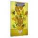Sunflowers Vincent van Gogh. Still life on a yellow background. A bright bouquet of sunflower flowers stand in a vase. Reproduction of famous works of art images in the public domain.