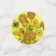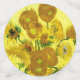 Sunflowers Vincent van Gogh. Still life on a yellow background. A bright bouquet of sunflower flowers stand in a vase. Reproduction of famous works of art images in the public domain.