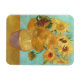 Sunflowers (1889) Vincent van Gogh. Still life on a blue background. A bright bouquet of sunflower flowers stand in a vase. Reproduction of famous works of art images in the public domain.
