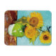 Sunflowers (1888) Vincent van Gogh. Still life on a blue background. A bright bouquet of sunflower flowers stand in a vase. Reproduction of famous works of art images in the public domain.