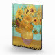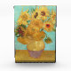 Sunflowers (1889) Vincent van Gogh. Still life on a blue background. A bright bouquet of sunflower flowers stand in a vase. Reproduction of famous works of art images in the public domain.