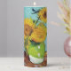 Sunflowers (1888) Vincent van Gogh.Still life on a blue background. A bright bouquet of sunflower flowers stand in a vase. Reproduction of famous works of art images in the public domain.