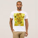 Sunflowers Vincent van Gogh. Still life on a yellow background. A bright bouquet of sunflower flowers stand in a vase. Reproduction of famous works of art images in the public domain.
