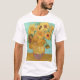 Sunflowers (1889) Vincent van Gogh. Still life on a blue background. A bright bouquet of sunflower flowers stand in a vase. Reproduction of famous works of art images in the public domain.