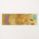 Sunflowers (1889) Vincent van Gogh. Still life on a blue background. A bright bouquet of sunflower flowers stand in a vase. Reproduction of famous works of art images in the public domain.