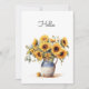 Pretty still life yellow sunflowers in a blue and white pitcher botanical print is the front of this Hello card. Text can be changed to your preferred greeting. AI assisted graphic purchased with commercial use. Artwork: CraftersOasisArt