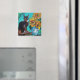 SUNFLOWERS WITH BLACK CAT IN BLUE TURQUOISE MAGNET