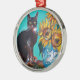 SUNFLOWERS WITH BLACK CAT IN BLUE TURQUOISE METAL ORNAMENT