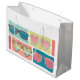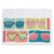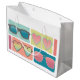Fun hand illustrated gift bag featuring a quad of sunglasses in shades of pink, teal, coral and yellow sitting on distressed backgrounds. Great for a pool party, birthday, barbeque or just a fun summer get together.