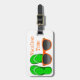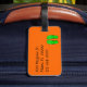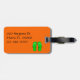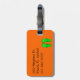 Fun luggage tag with graphics of orange sunglasses and green flip flops, on the front, with orange custom text reading, Vacation Time. The back of the tag is solid orange, with custom black text. Personalize all the text for your luggage, or as a great gift idea.
