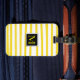 Sunlight yellow artistic watercolor stripes on a white background with a custom monogram in a sans serif font. Check our store for more luggage tag options.