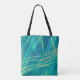 On this pretty tote bag, lines of bright yellow sunlight seem to streak through a teal green forest, forming a pretty abstract pattern. Unique, attractive, and versatile, this bag is great for all seasons!