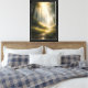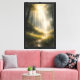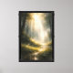 Golden rays of sunlight pour gently through the tall trees of a lush forest, illuminating a quiet woodland path and sparkling reflections in a small stream. The glowing beams create a magical and peaceful atmosphere, as if the forest itself is alive with light. This artwork captures the enchanting beauty of nature and the serene feeling of walking through a sunlit forest sanctuary.