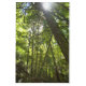 Sunlight filters through a dense forest canopy, illuminating layers of branches and leaves from below. The upward perspective captures the height and depth of the trees, creating a natural sense of immersion in the woods.