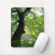 A mousepad with a photograph of a view across a valley in Wales through the sunlit leaves of an old tree.