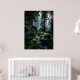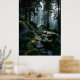 Golden sunlight pours through towering evergreen canopies, illuminating a winding stone path blanketed in soft moss and scattered rocks. Mist drifts gently among ferns and tree trunks, diffusing the warm rays into a dreamy, almost sacred glow. The composition radiates profound calm, timeless solitude, gentle renewal, the quiet magic of untouched wilderness, and the call to step deeper into nature’s embrace—perfect for meditation rooms, bedrooms, home offices, therapy spaces, nature-inspired living areas, or as soul-soothing gifts for hikers, mindfulness seekers, forest lovers, or anyone craving peace, grounding, daily inspiration, or reminders of inner stillness.