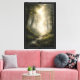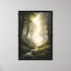 A peaceful forest scene with soft sunlight filtering through tall trees and illuminating a gentle stream flowing over mossy rocks. This artwork captures the beauty of nature, morning mist, and quiet wilderness, creating a calm and refreshing atmosphere for any interior space.