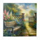 Sunlit Garden Pathway Gate Scene Ceramic Tile