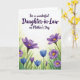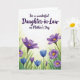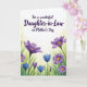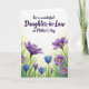 Designed with a gentle floral scene, this card features a large message placed across the top in flowing, dark lettering that feels like a soft note shared between close hearts ❤️. Below the words, stylized flowers rise up as if offered like a bouquet, giving the layout a friendly, affectionate tone. The background fades from pale green into creamy white, like early light over a quiet meadow. Several open blossoms in lavender and deep periwinkle take center stage, each with a textured golden-yellow middle that draws the eye. Smaller buds and partly opened petals in matching blue-purple shades cluster nearby, suggesting a sweet, growing connection. Thin green stems and slim leaves weave through the lower half, adding natural movement and a calm rhythm 🌼. Soft shading along the petals and leaves creates gentle depth, and the top text sits clearly above the blooms in a single, centered line. The lower portion is filled with layered flowers, buds, and greenery against the pale green-to-cream gradient.