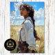 This design radiates warmth and independence — featuring a young woman with flowing dark curls, suspenders, and a soft white blouse, standing tall beneath a bright summer sky. Perfect for adding character to farmhouse furniture, DIY wall panels, wooden trays, and rustic home décor. Great for decoupage projects that tell a story, from journal covers to shadowbox art. A must-have for furniture flippers and creative crafters looking for timeless prairie beauty.