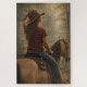 Golden light filters through the trees as a rider pauses along a quiet forest trail. This peaceful western artwork captures a moment of reflection and freedom on horseback beneath warm afternoon light.
