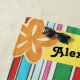 Personalize this bright colorful striped towel for the pool or beach with your own name or other optional text. Just edit your text in the easy Zazzle editor and choose your size. Available also on several tote bag styles at www.zazzle.com/store/beebagsandcases