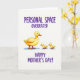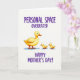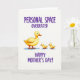This design shows a sunny yellow adult water bird on the left, stepping forward with an easy, caring posture while two smaller fluffy chicks trail close behind like they can’t bear to be apart ❤️. Their round bodies are painted with soft brushy texture, and the close spacing creates a sweet, affectionate closeness that feels like constant companionship. The background stays white and open, letting the trio stand out while pale blue shadows beneath their feet add a gentle sense of depth. Across the upper area, the phrase “PERSONAL SPACE OVERRATED” appears in rich purple lettering that curves around the scene. Lower down, “HAPPY MOTHER’S DAY!” is placed beneath the birds in the same purple, reading clearly against the light background. The overall look is light and humorous, with the little birds’ forward-leaning steps echoing a trusting follow-the-leader energy 🌼. One of the chicks has a small fluffy feather tuft sticking up on its head, adding a cute bit of character.