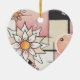 Abstract acrylic painting featuring floral designs in pink, black and white. Geometric patterns, with various shades of pinks. Large daisy with scattering of smaller daisies. Original art.