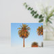 Photograph of sunny california palm trees against a blue sky - on a postcard