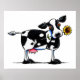 Get happy with this original ink and pencil illustration of a dairy cow clutching a sunflower by Andie of Off-Leash Art™.