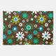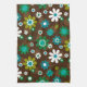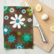 A Mod Retro Dish Towel Of Daisy Flowers In Brown, Blue and White Pattern